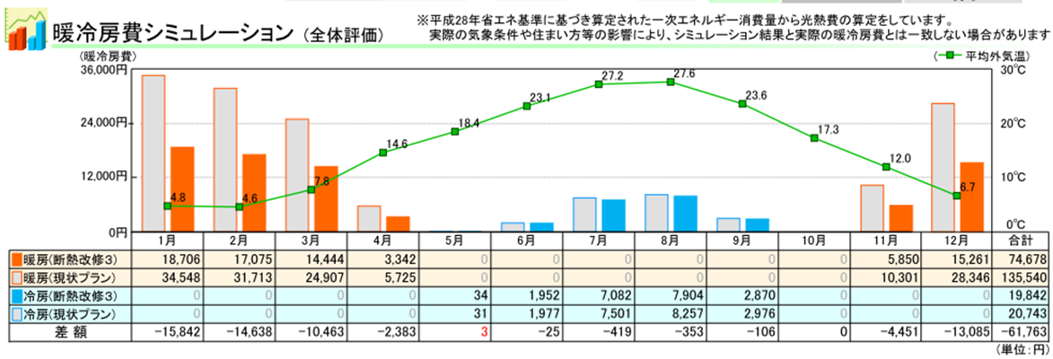 断熱仕様:等級4(H28基準)目標+窓リノベ内窓Sグレード