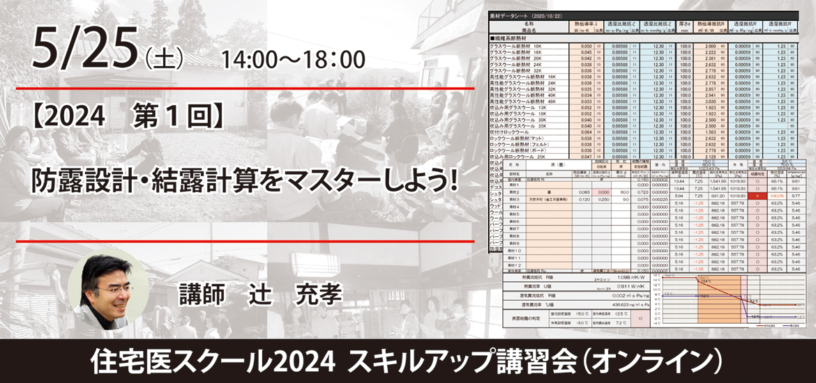 住宅医スクール2024(第3回)温熱の講義の補足として、既存住宅の温熱改修に欠かせない防露設計や結露計算の基礎知識、計算方法等について解説します。