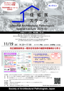 11月19日(水)開催:住宅医スクール2025特別講義(第2回)オンライン + 会場開催【終了】
